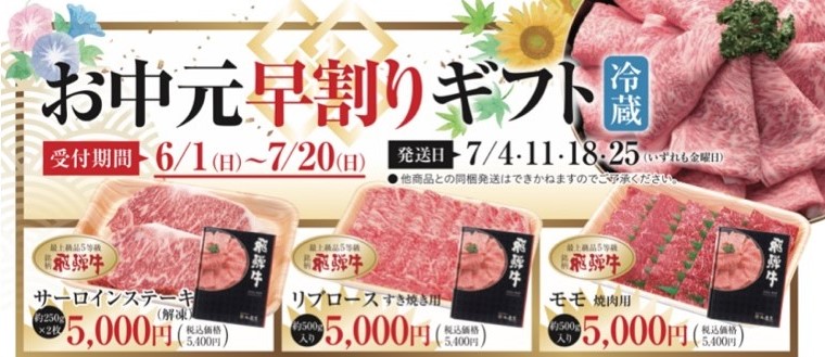 飛騨牛サーロインステーキ、リブロースすき焼き、もも焼肉の3種類からお選びいただけます!