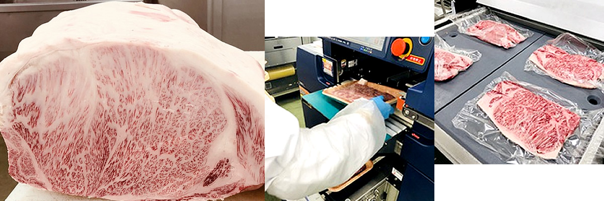 ステーキやすき焼き、陶板用などの基本カットをはじめ、真空チルドパック・変色防止のセロハン引きなど、お客様のご要望に合わせて納品させていただいております。