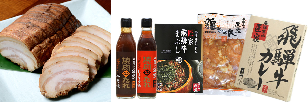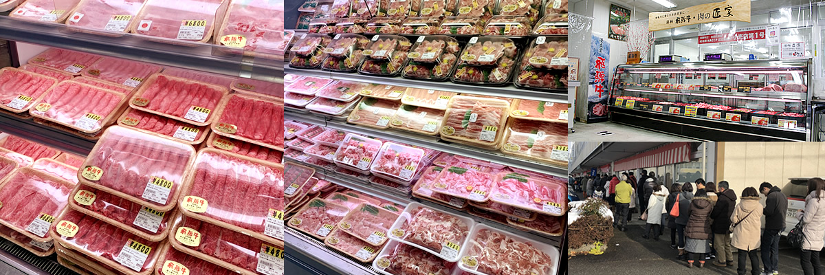 店内には匠家こだわりの飛騨牛をはじめ、地元特産の飛騨旨豚・結旨豚などを販売しております。
