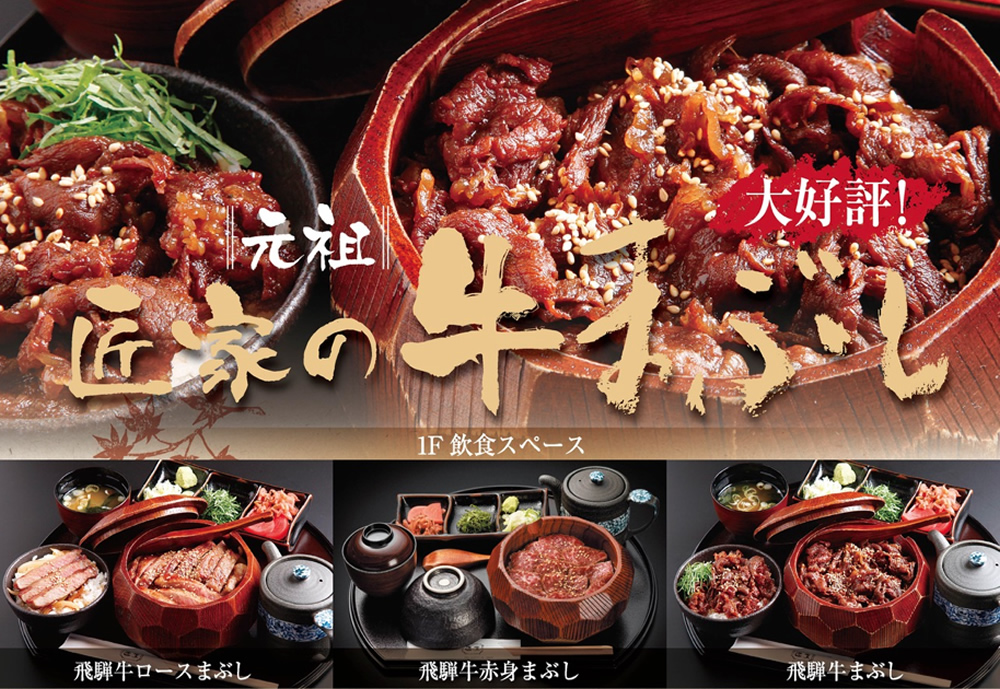 小売販売の他にも、焼肉食べ処、元祖飛騨牛まぶし、ファストフード等々、人気の飛騨牛料理を堪能できる店舗として、観光客の方、地元の方に愛されるお店に育てていただきました。
